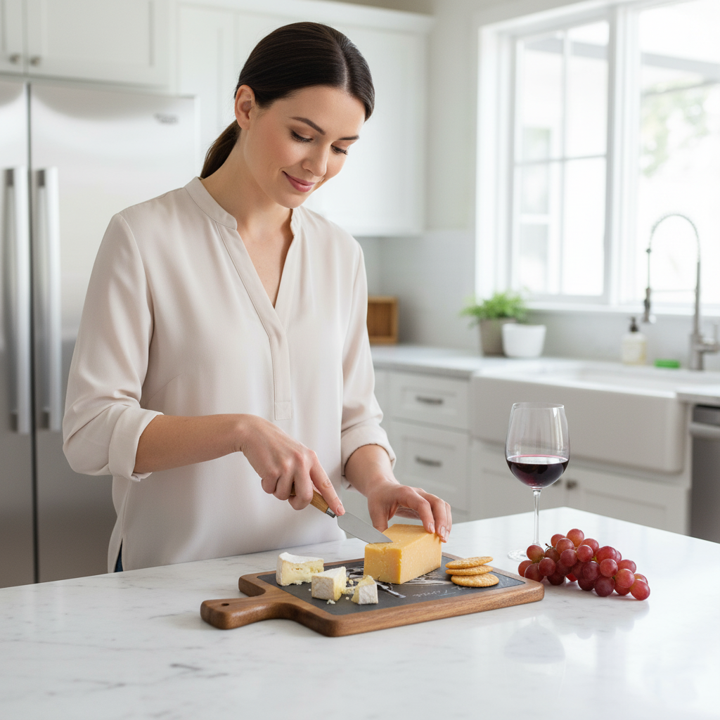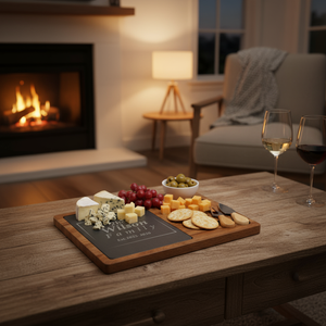 Elevate your entertaining game with this exquisite Charcuterie Board, perfect for showcasing your culinary creativity. Crafted from durable acacia wood and a removable slate surface, this board offers a beautiful blend of function and style. The engraved details lend a personal touch, making it an ideal centerpiece for gatherings. Imagine hosting friends and family with this stunning board, setting the ambiance for laughter and luxury. This product is perfect for food enthusiasts, home entertainers, and anyone looking to impress at their next celebration. It’s an excellent gift for housewarmings, weddings, and even holiday parties, bringing joy and sophistication to any occasion.
