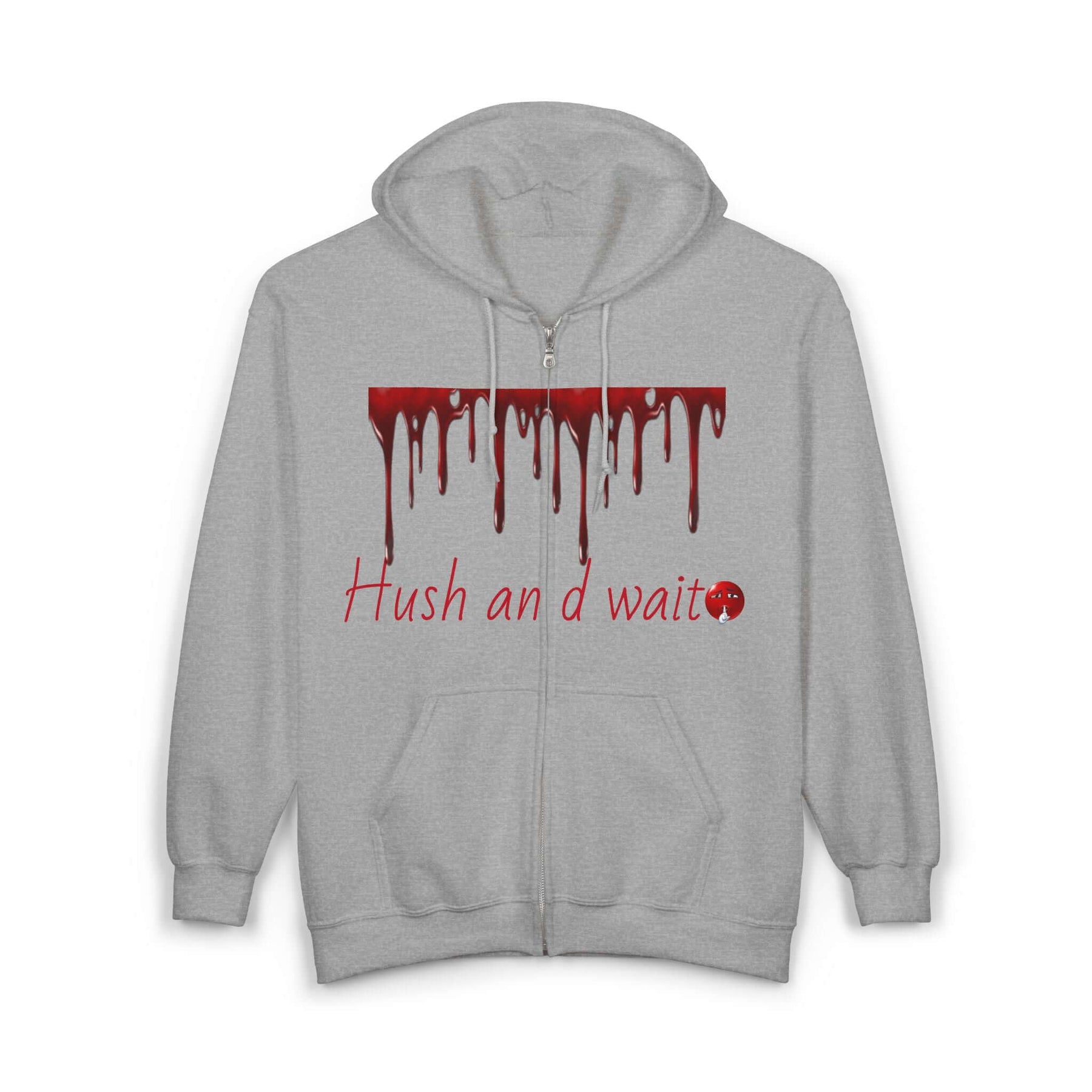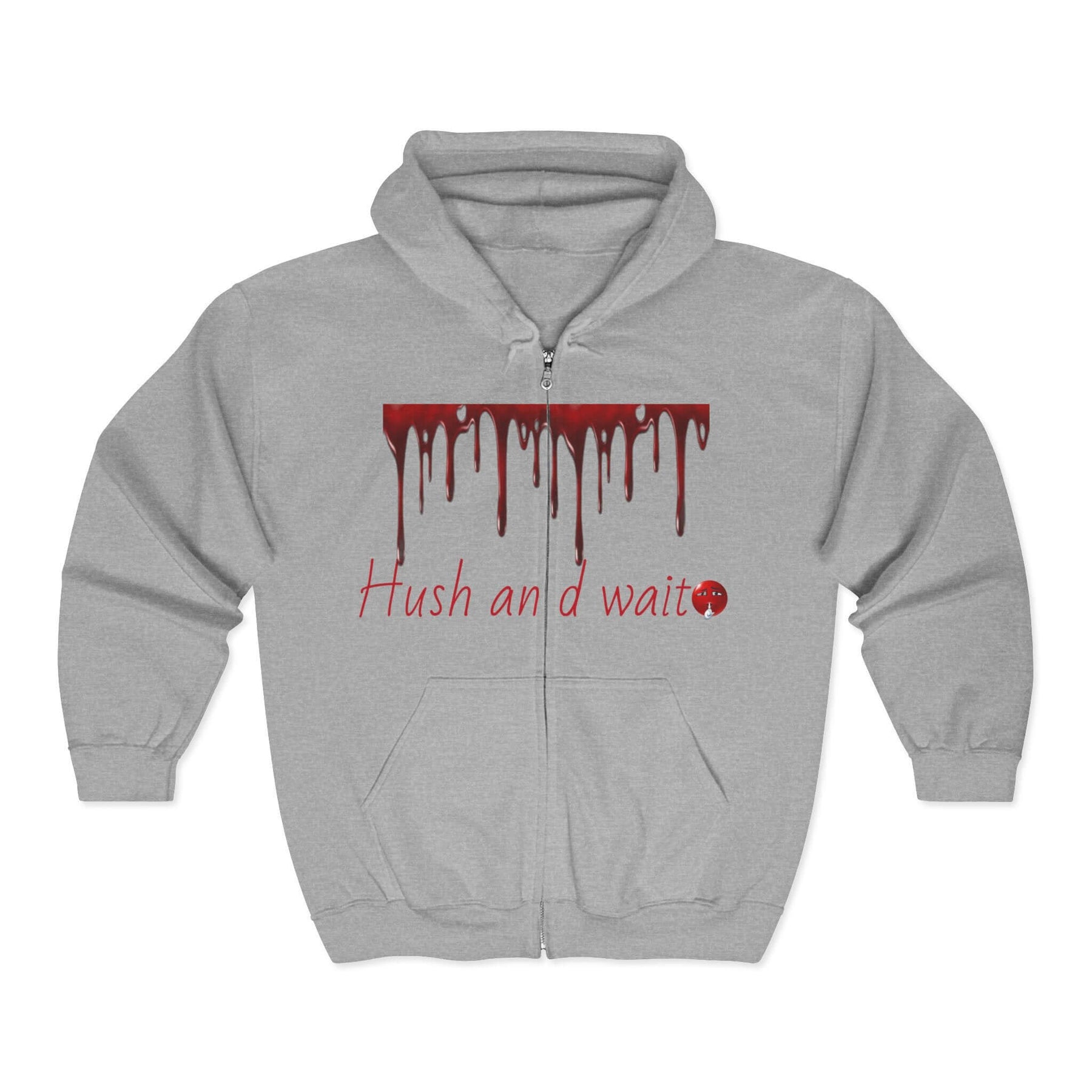 Grunge Horror Hoodie with Dripping Text – Zip-Up Sweatshirt for Halloween & Streetwear